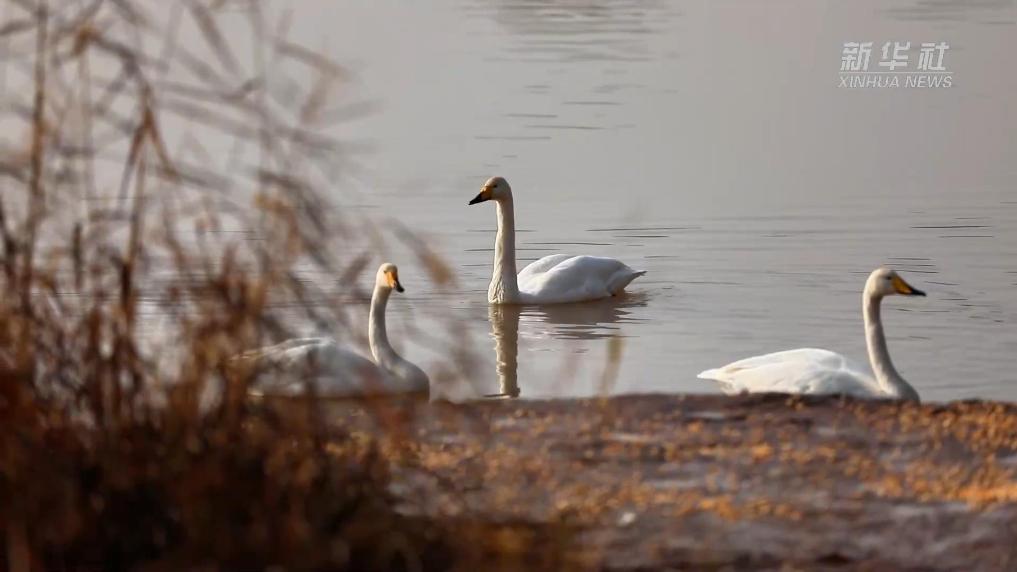 越冬大天鵝“先遣隊”飛抵甘肅蘭州三江口